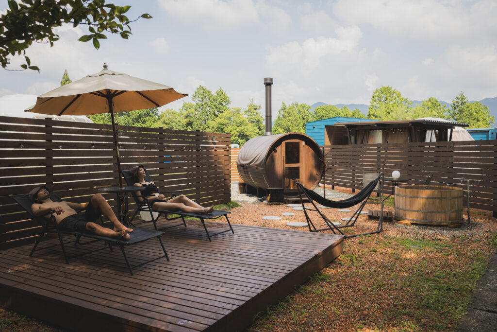 施設内には木の香りに包まれるバレルサウナも完備しています。自然の中で「ととのう」極上の時間を楽しめます。