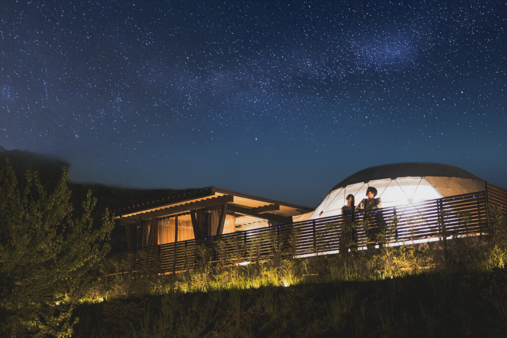 街の喧騒から離れた自然の中にあり、晴れた夜は満天の星空を堪能。専用デッキでくつろぎながら、幻想的な天体ショーを楽しめます。