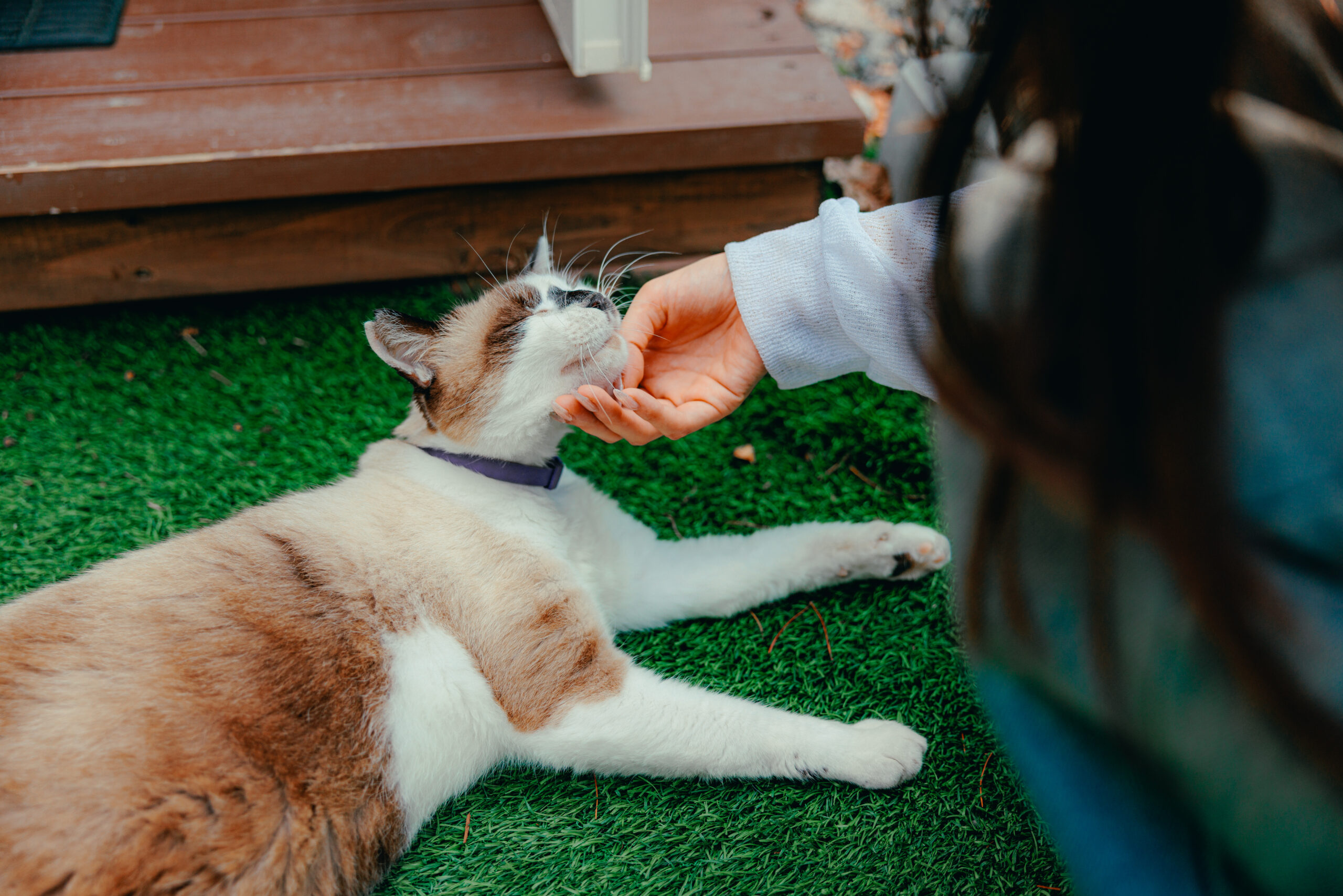 実は野良猫のグラン。しかし、いつの間にかCROCEグランピングに居つき、今ではすっかりこの場所の名物猫に。まるで飼い猫のように人懐っこい性格で、声をかけると「にゃー」と愛らしい声で応えて近づいてきてくれます。最近は、グランに会うために訪れるお客さまもいらっしゃいます。