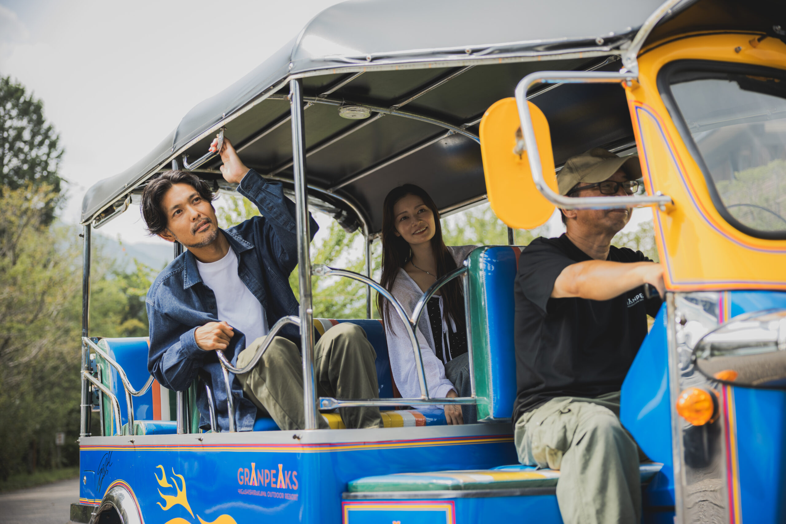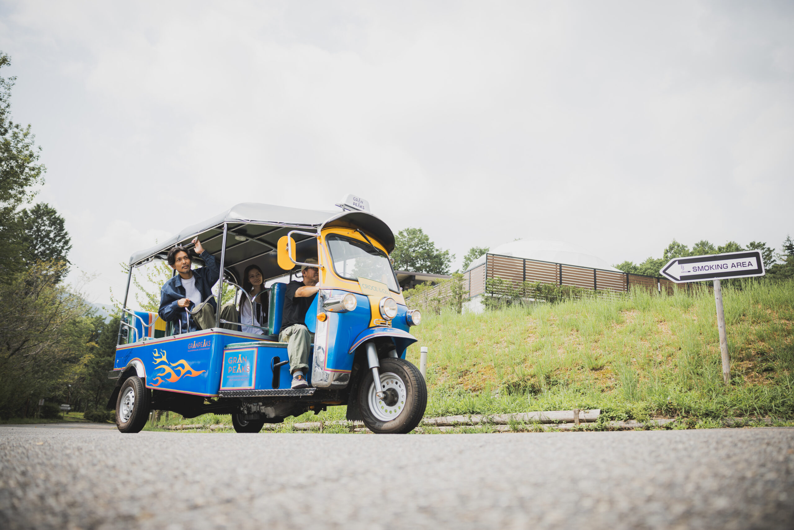 バスでご来店の際は、ご予約の際にお申込み頂けば、トゥクトゥクでお迎えいたします。ユニークで楽しい移動手段で、CROCEグランピングへの旅がさらに特別なものになります。