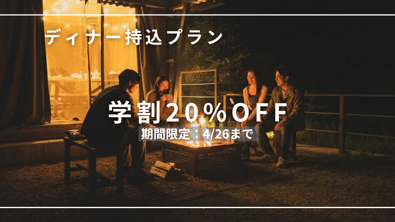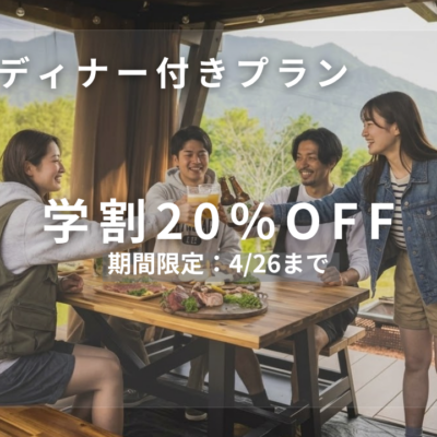 18歳以上の学生限定・学割20%OFFのお得なグランピングプラン。
